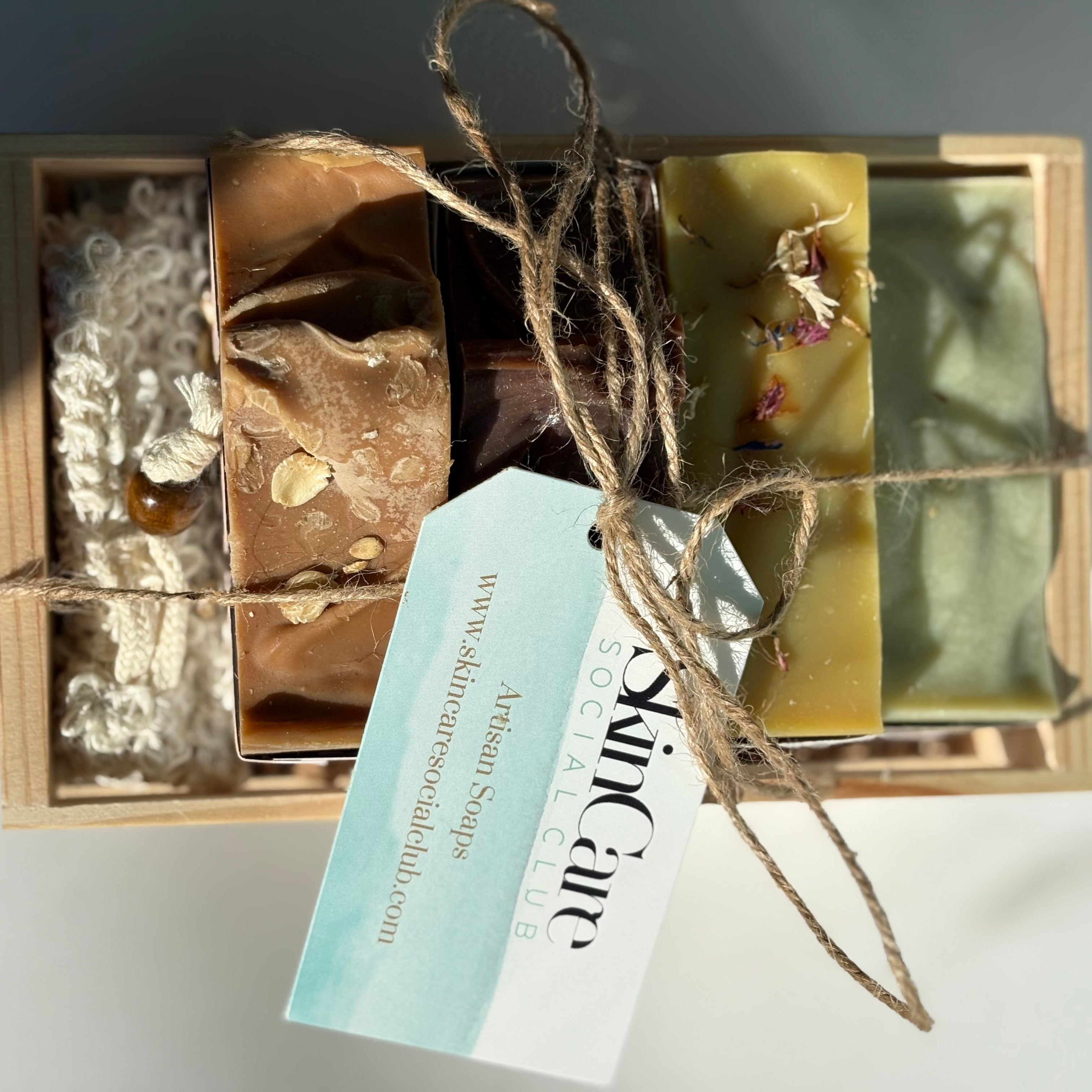 Dare to indulge with our Soap Crate Gift Set! Our all-natural, plant-based soaps, together with the exfoliating soap saver, create a decadent, silky lather that will pamper your skin. Unwrap the adventure and treat yourself to a luxurious spa experience!